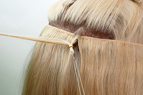 Для наращивания используется отрезной тресс и микро колечки на основе силикона с безвредным напылением оттенка цвета, который совпадает с цветом корней волос и оттенка волос тресса. Тресс- это волосы, которые сшиты в одну линию волос специальной нитью. Техника наращивания заключается в том, что тресс помещается между своими волосами и закрепляется колечками, распределяя минимальную нагрузку на широкий участок своих волос. Поэтому легко и комфортно в носке.